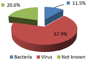 Of the 131 students 67.9% students answered that rabies is caused by virus while 11.5% students told that it is caused by bacteria and 20.6% does not know the causative agent.